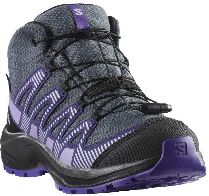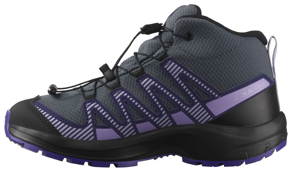 SALOMON XA Pro V8 MID WP J lila-szürke-fekete összehúzós VÍZÁLLÓ magasszárú terep sportcipő