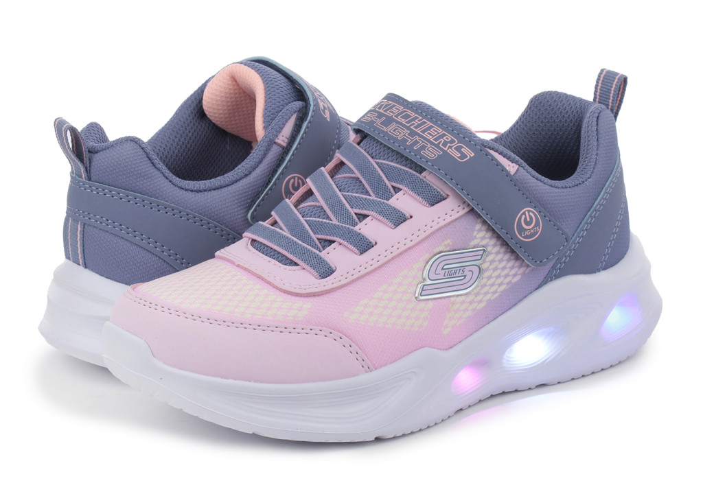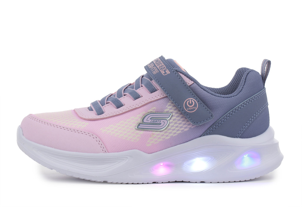 Skechers S Lights Sola glow-Ombre deluxe rózsaszín-szürke tépőzáras-gumifűzős ledes világítós textil kislány gyerekcipő (303714L-GYLP)