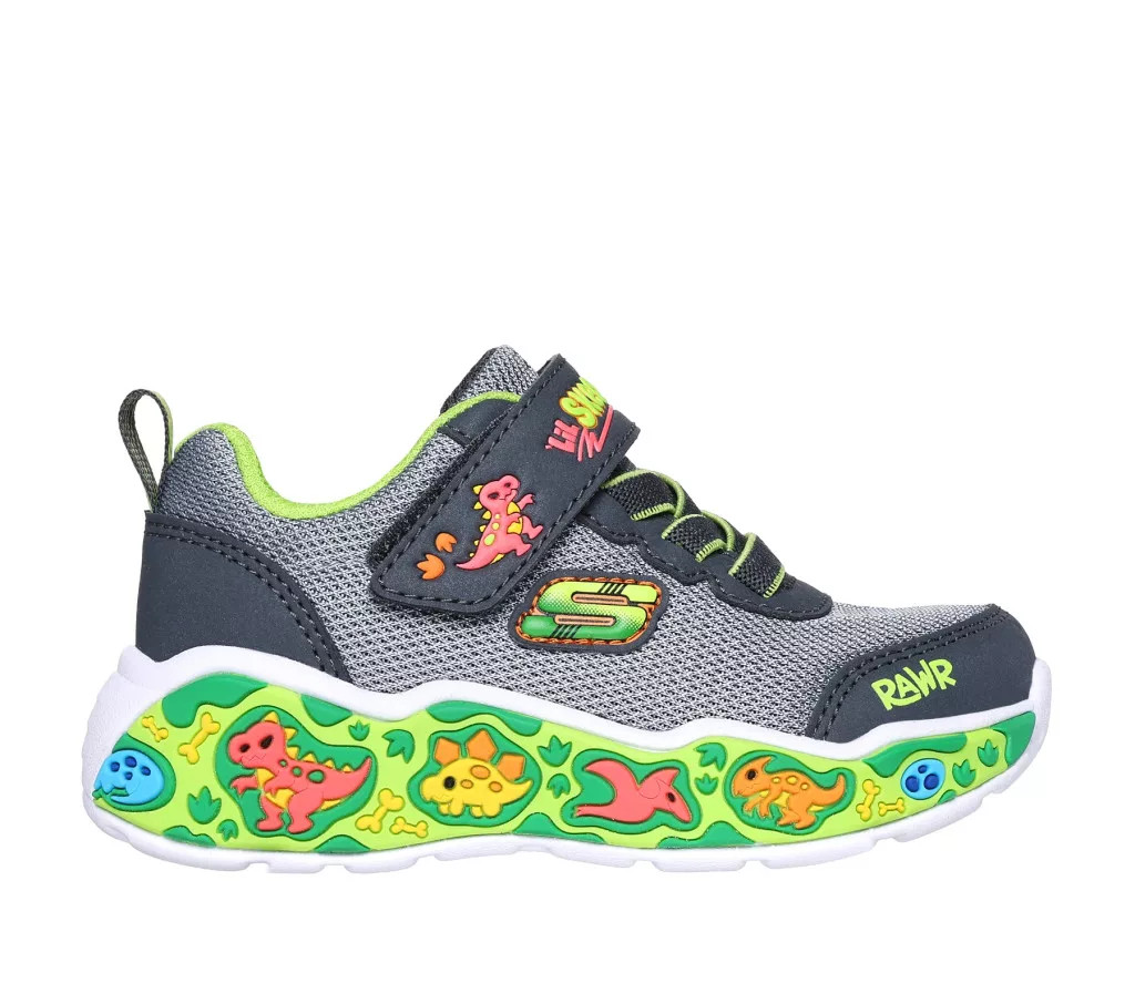 Skechers Play scene szürke-zöld dínós tépőzáras-gumifűzős kisfiú gyerekcipő