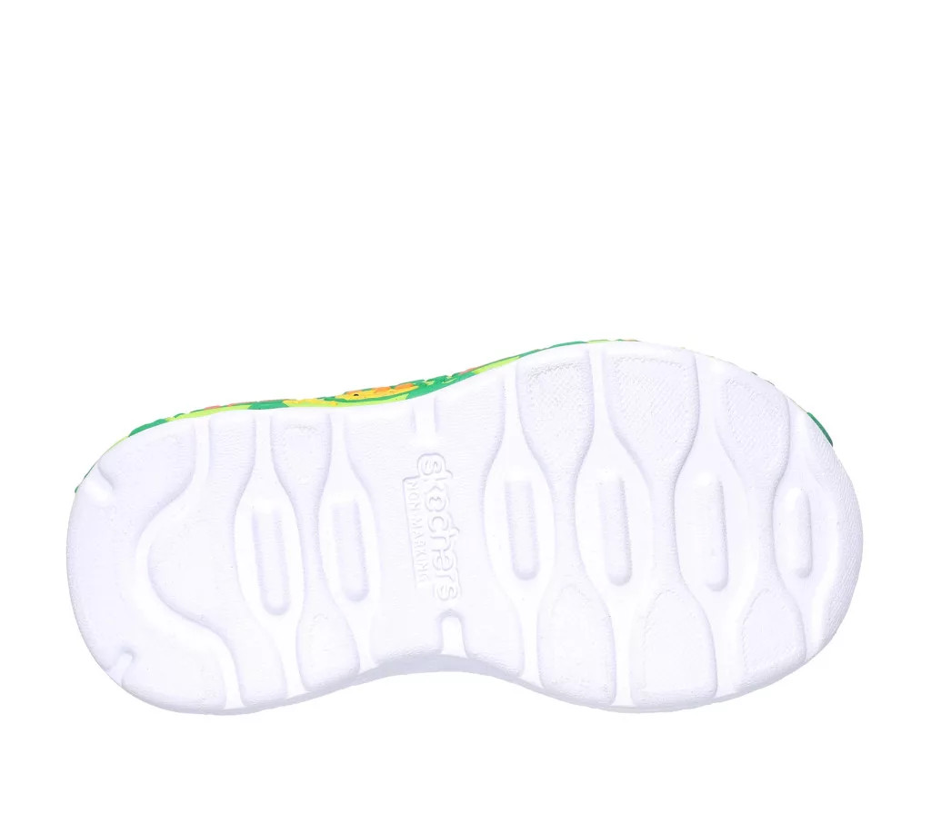 Ez a Skechers gyerekcipő igazán különleges darab, amely játékos dinoszauruszos mintájával azonnal a gyerekek kedvence lesz. A könnyű, légáteresztő anyag gondoskodik a komfortos viseletről, így egész nap ideális választás.