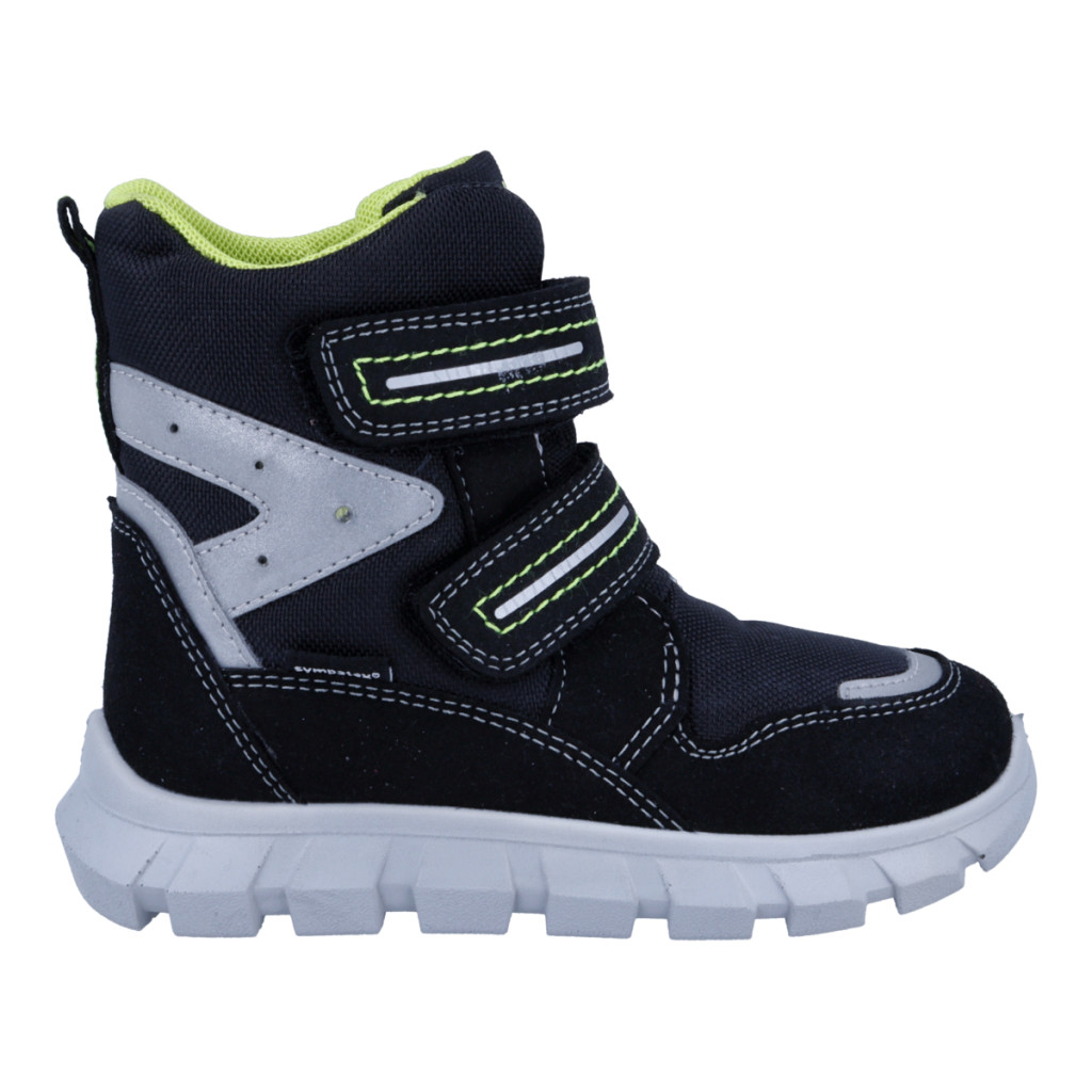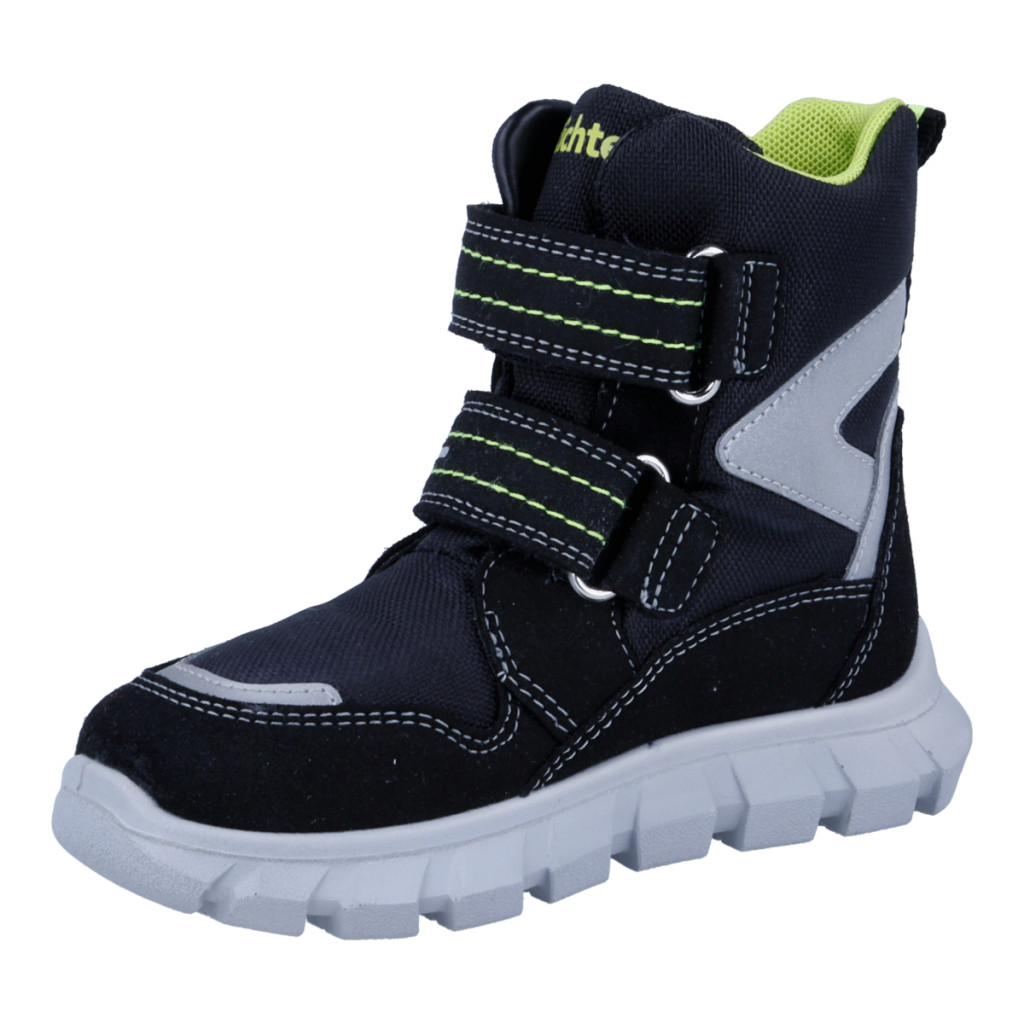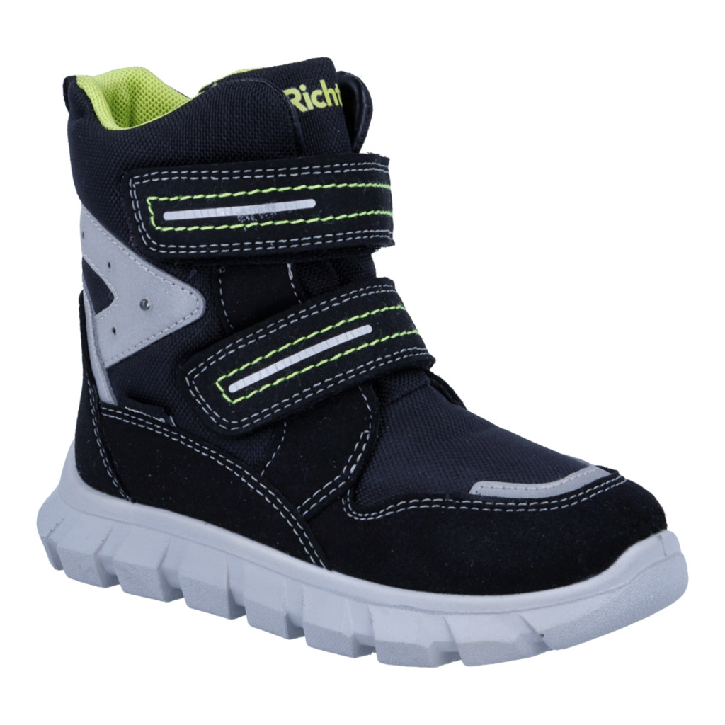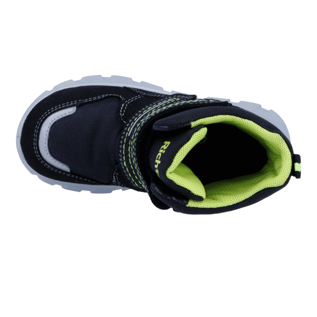 Siesta-Richter fekete-lime 2 tépőzáras szőrme béléses symatex (vízálló) LEDES velúrbőr-textil kisfiú csizma