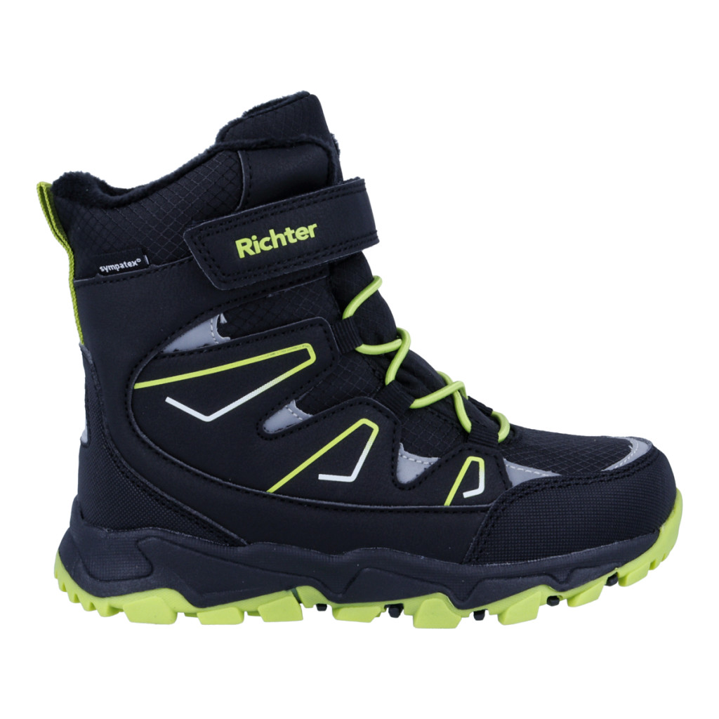 Siesta-Richter fekete-neon zöld tépőzáras-gumifűzős sympatex (vízálló) bélelt téli fiú bakancs