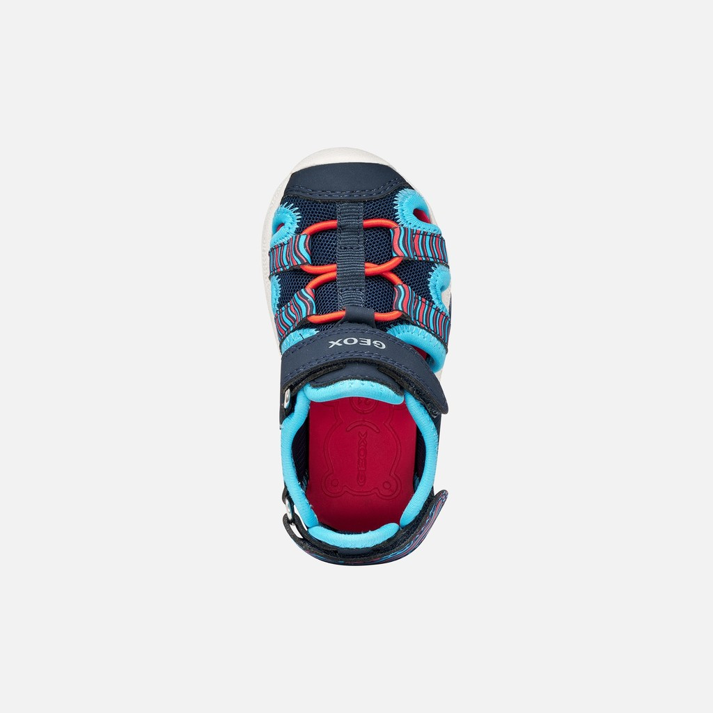 Geox Multy sötétkék-azúrkék-piros 2 tépőzáras respira (lélegző) Water Friendly zárt orrú textil uniszex gyerekszandál