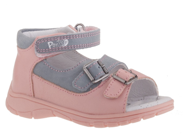 Ponte 20 rózsaszín-szürke 2 csatos-tépőzáras supinált bőr kislány gyerekszandál